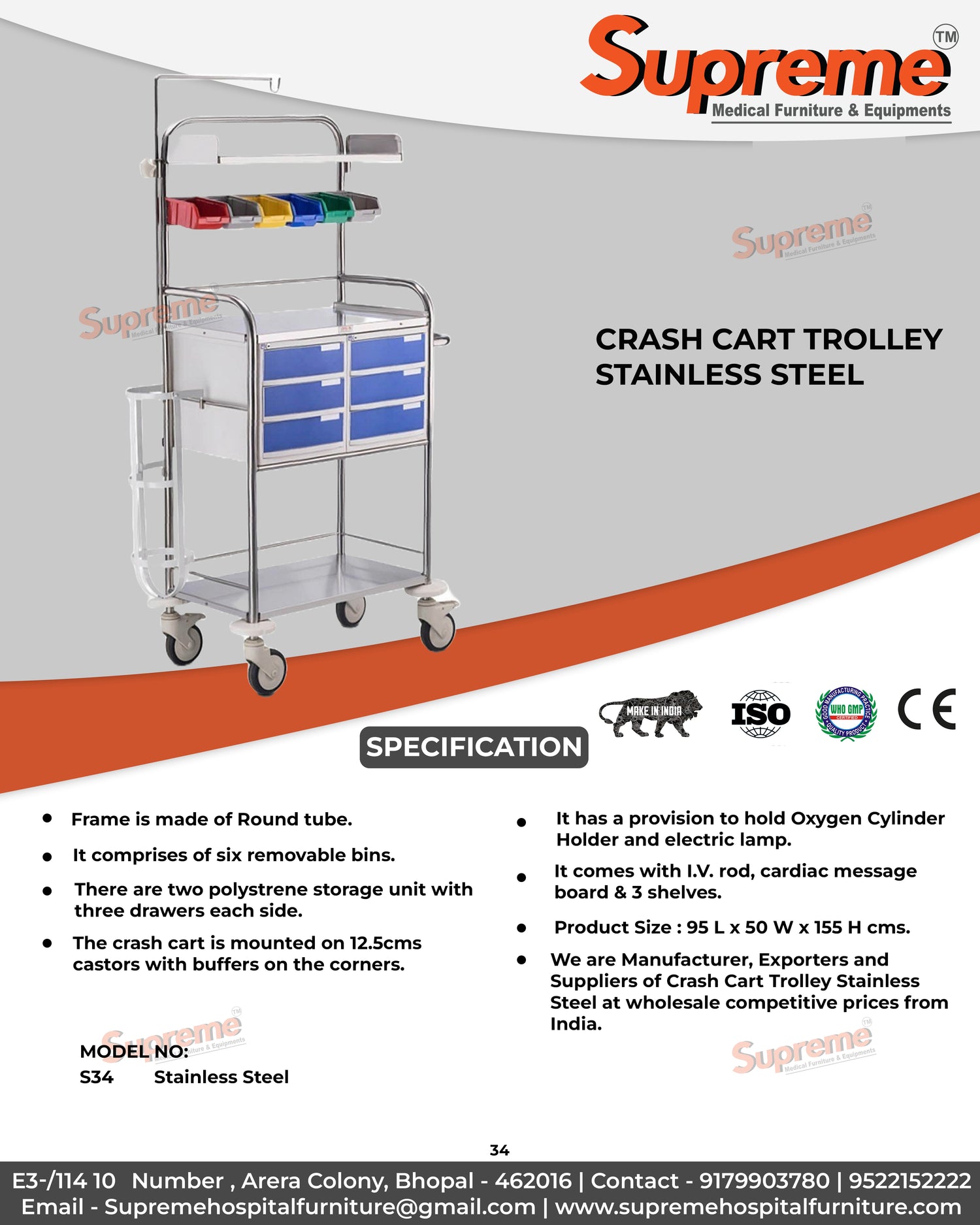 EMERGENCY RESUSCITATION TROLLEY METAL