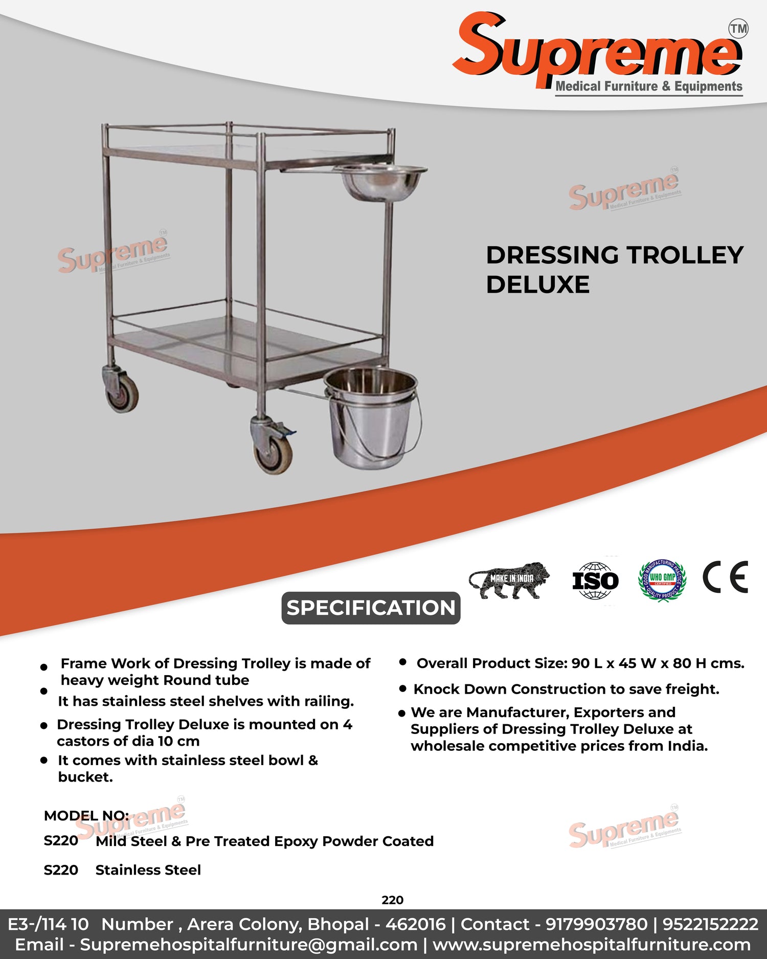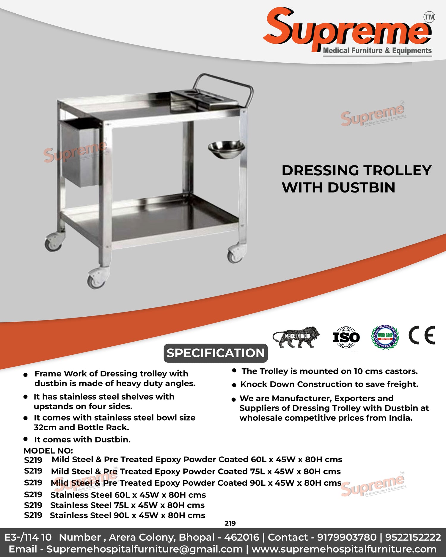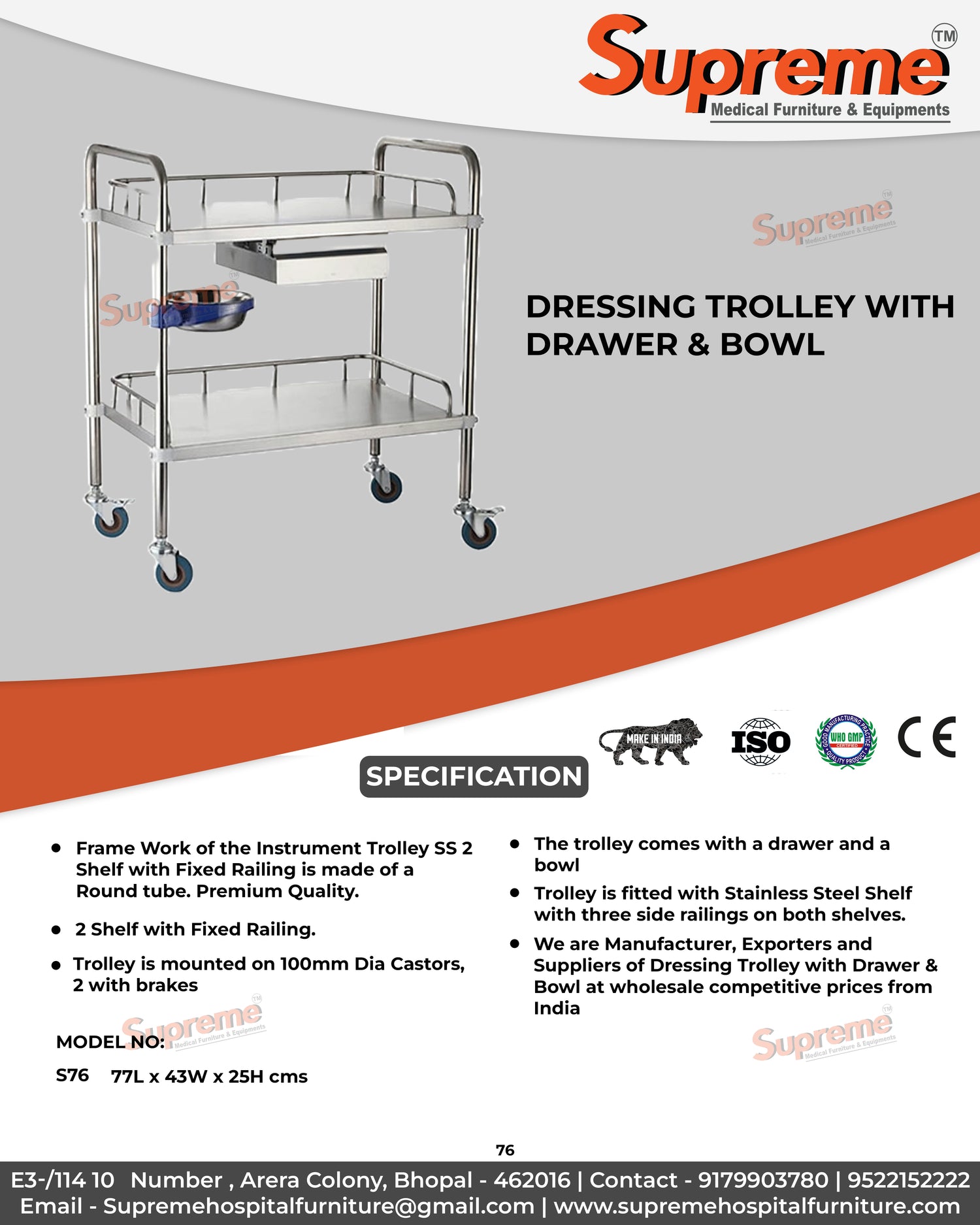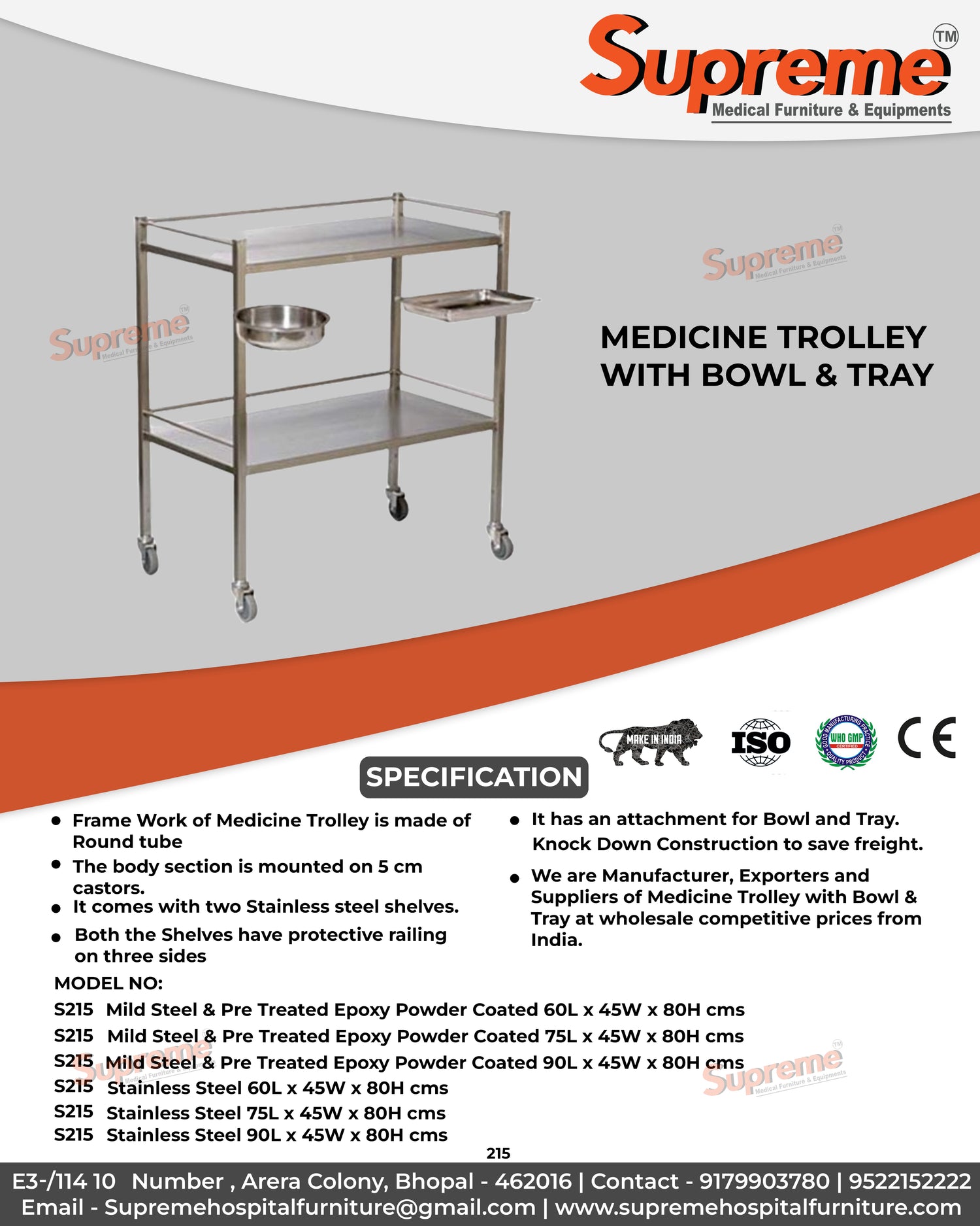 MEDICINE TROLLEY WITH BOWL & TRAY