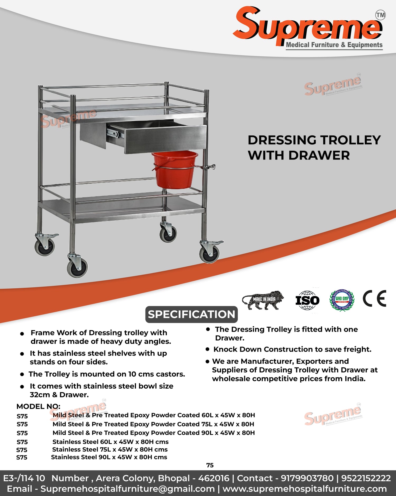 DRESSING TROLLEY WITH DRAWER & BOWL