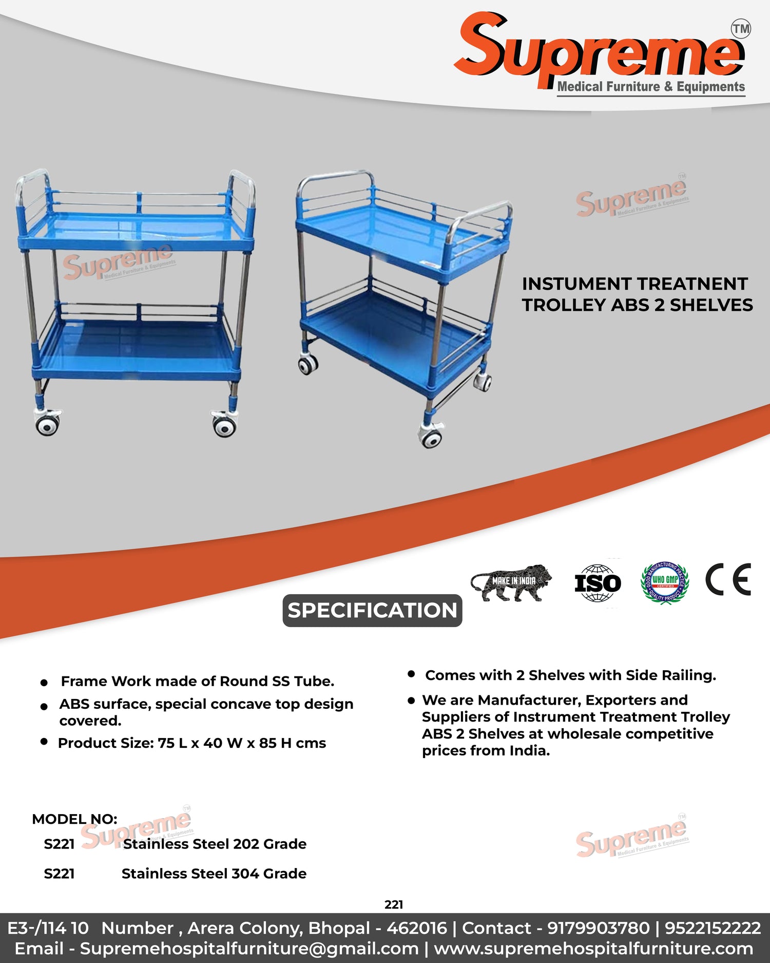 INSTRUMENT TREATMENT TROLLEY ABS 2 SHELVES