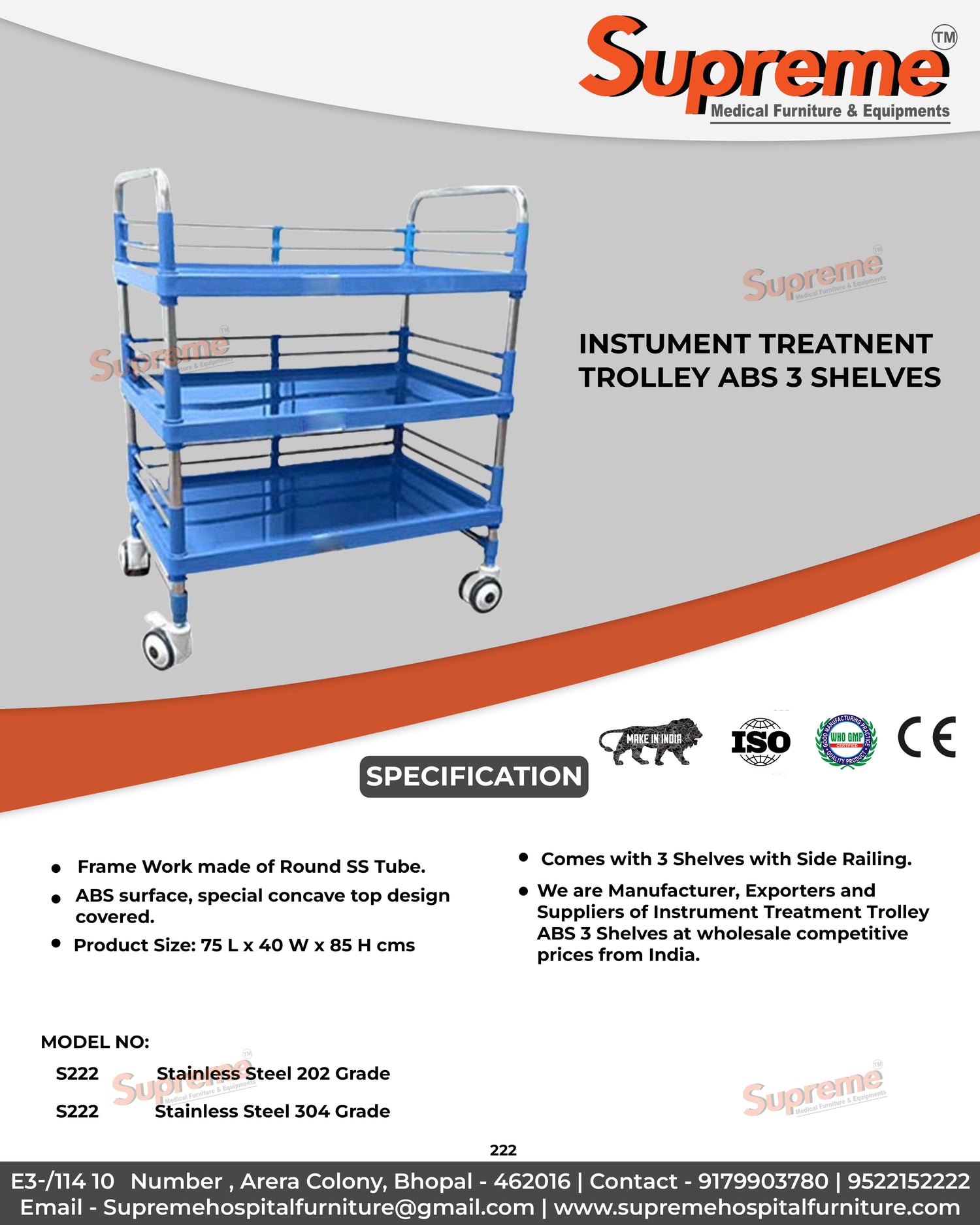 INSTRUMENT TREATMENT TROLLEY ABS 3 SHELVES