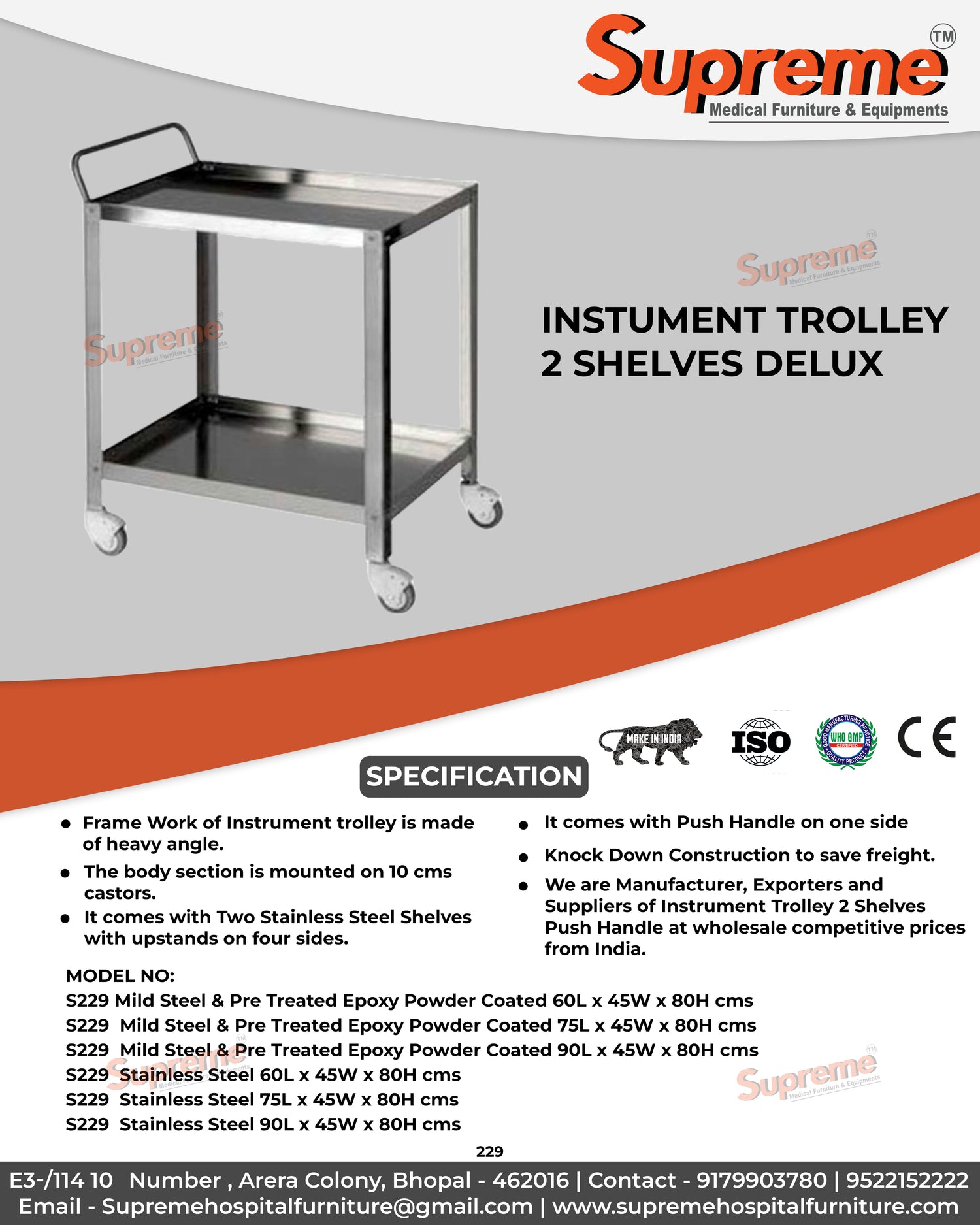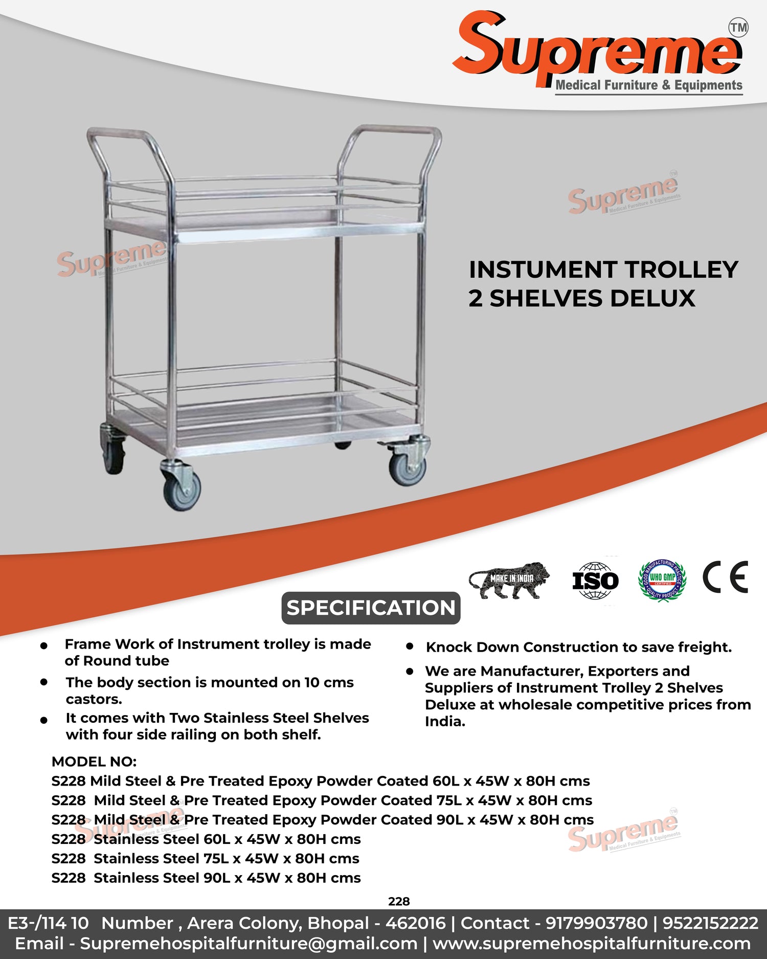 INSTRUMENT TROLLEY 2 SHELVES DELUX