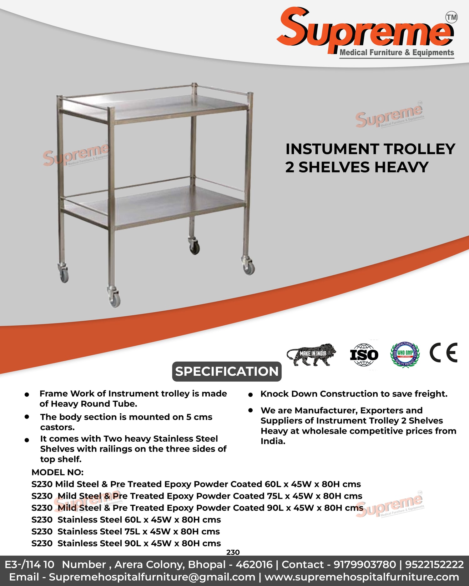 INSTRUMENT TROLLEY 2 SHELVES HEAVY