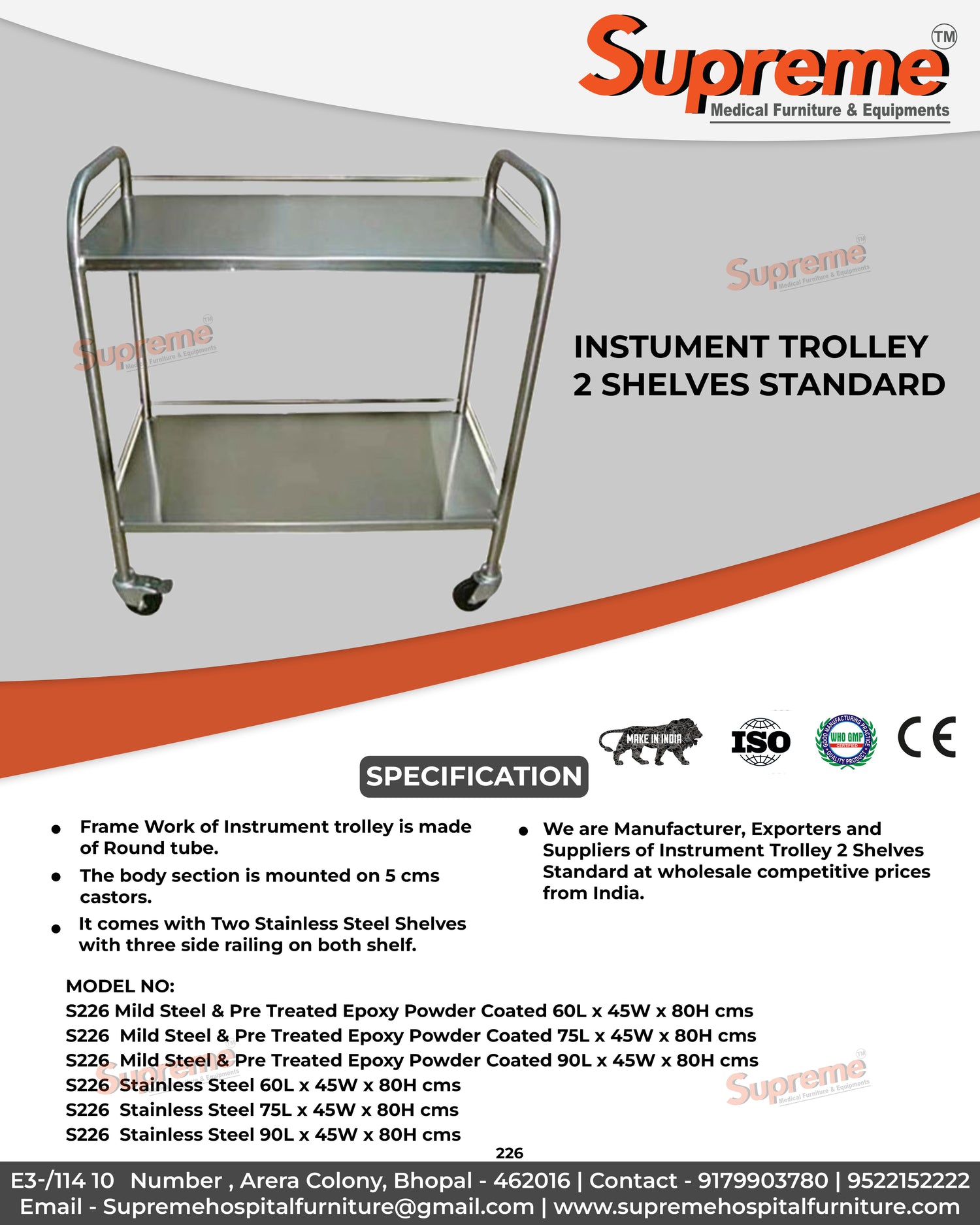 INSTRUMENT TROLLEY 2 SHELVES STANDARD