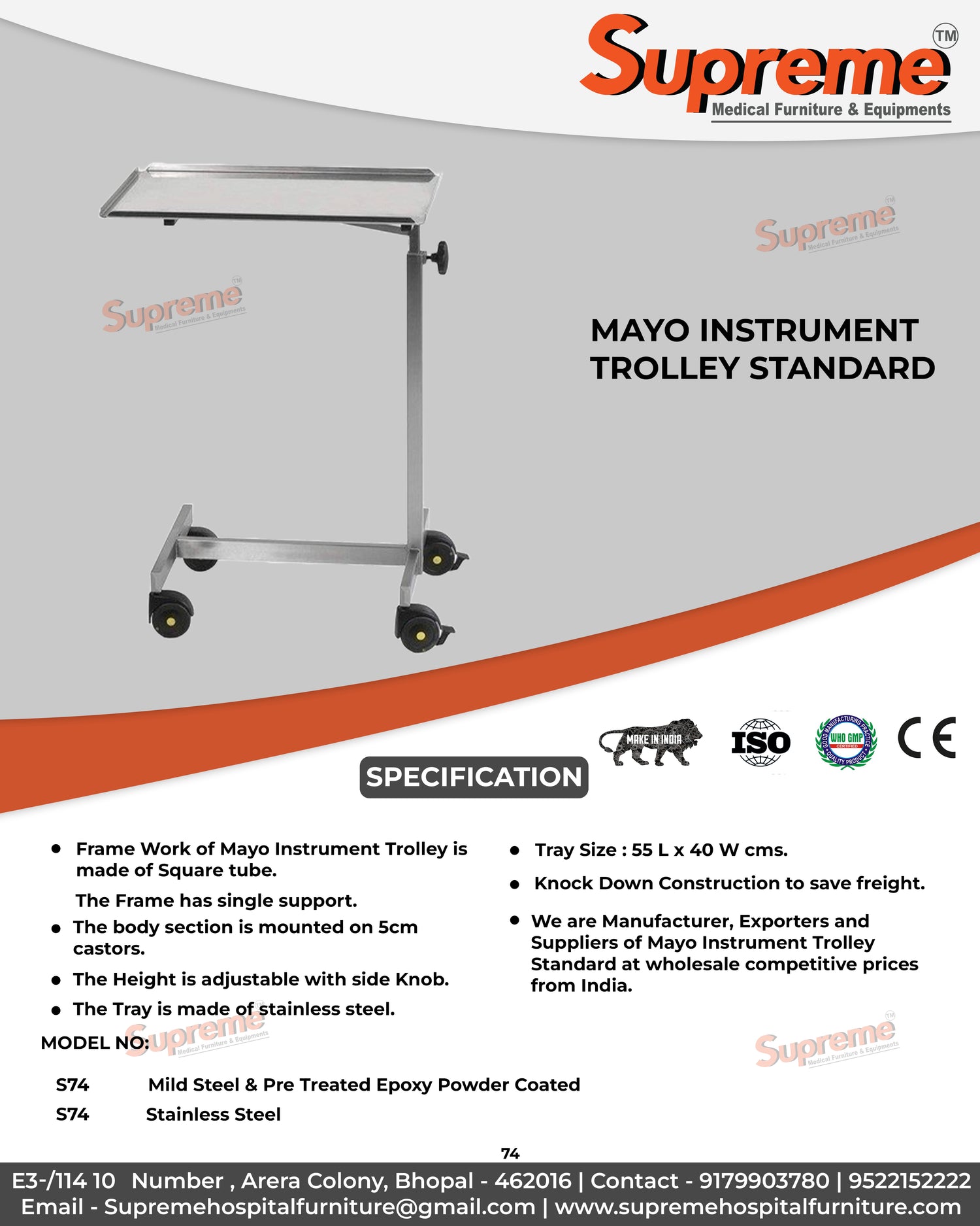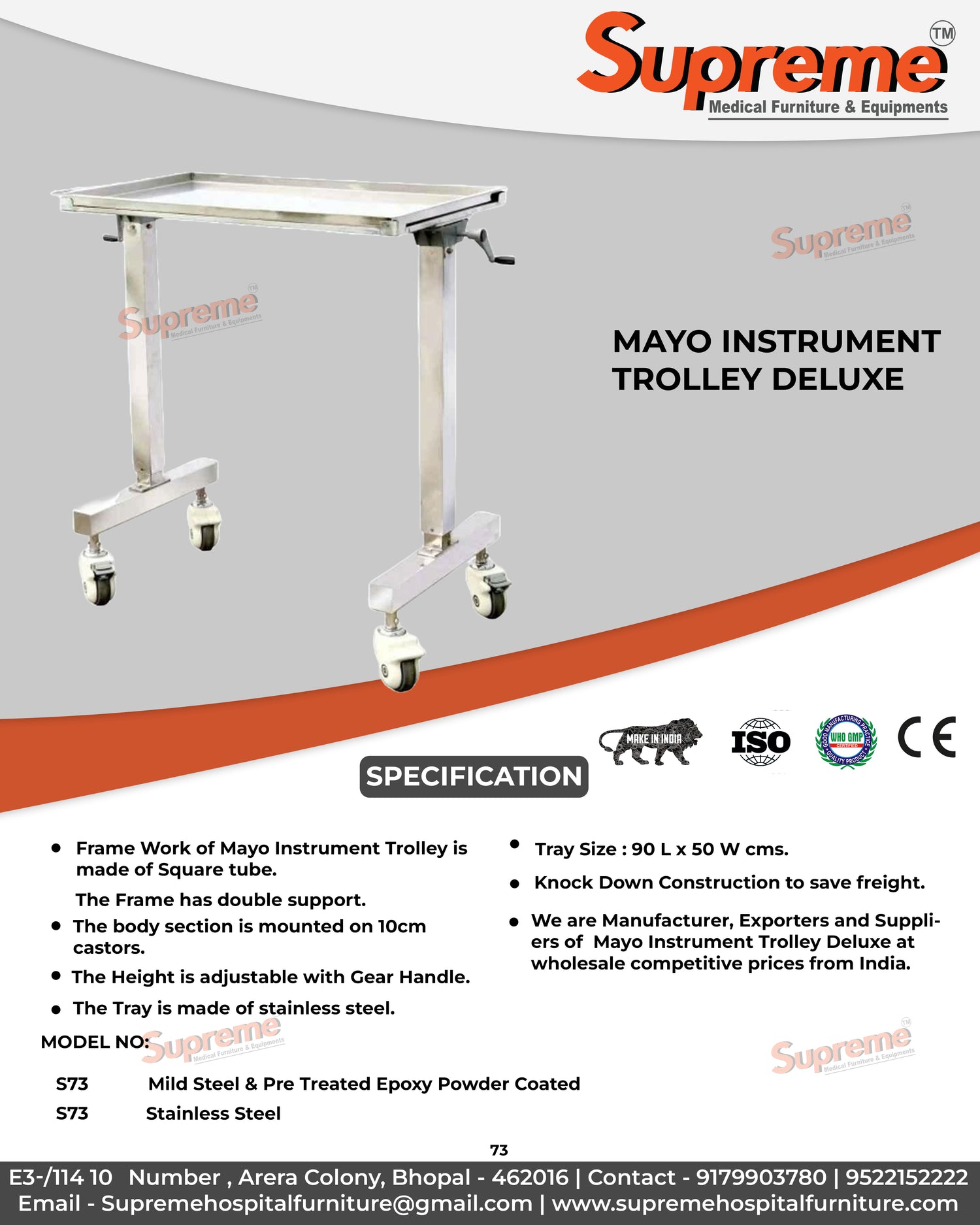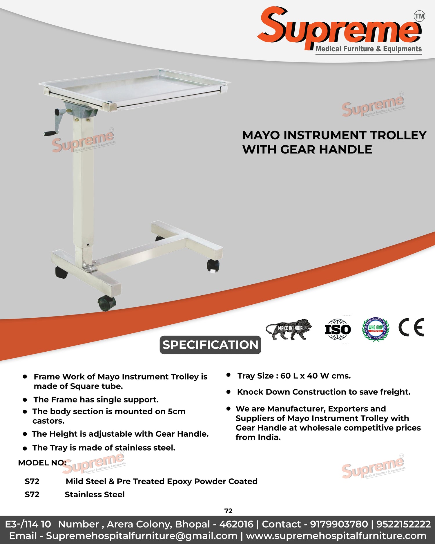 MAYO INSTRUMENT TROLLEY WITH GEAR HANDLE