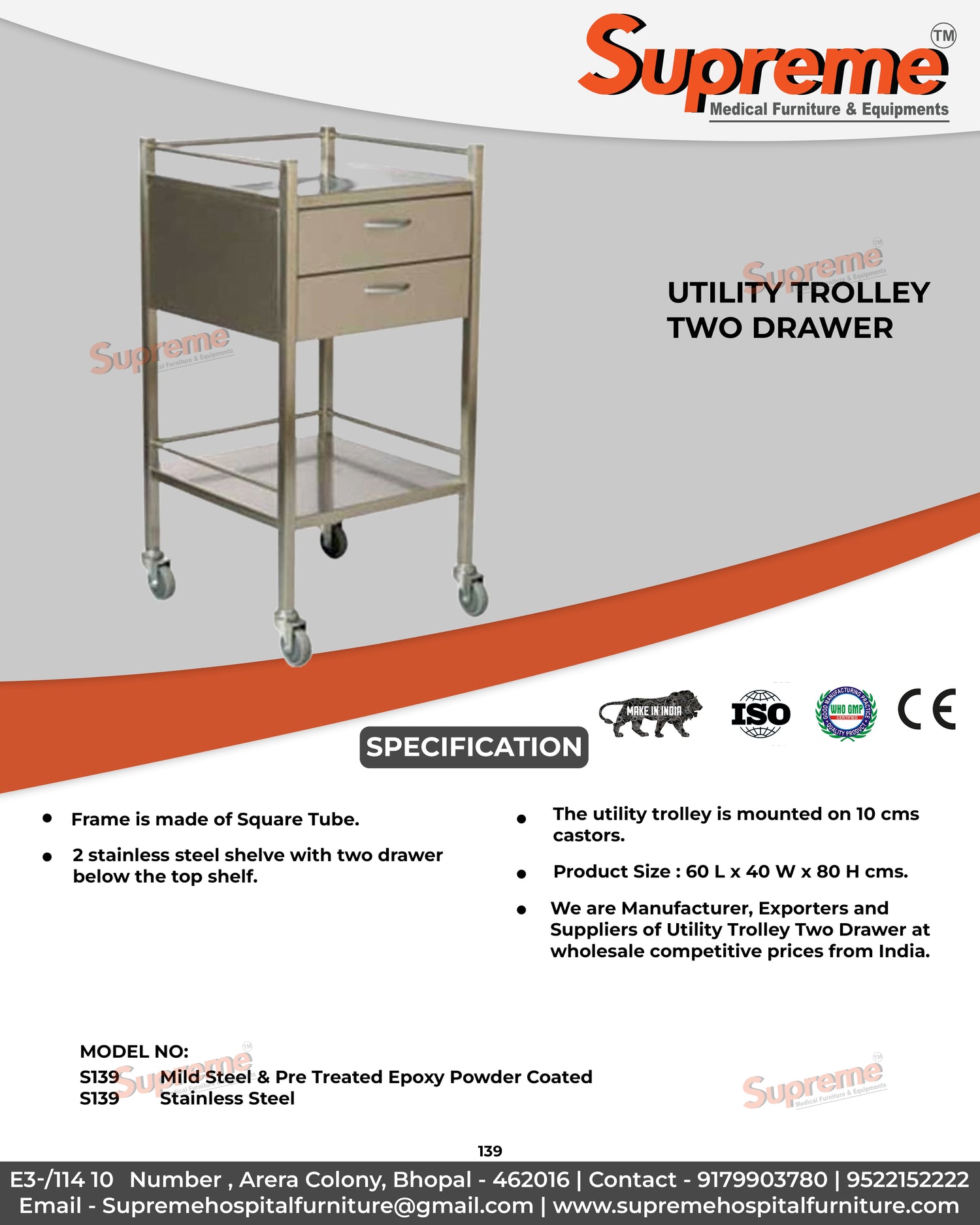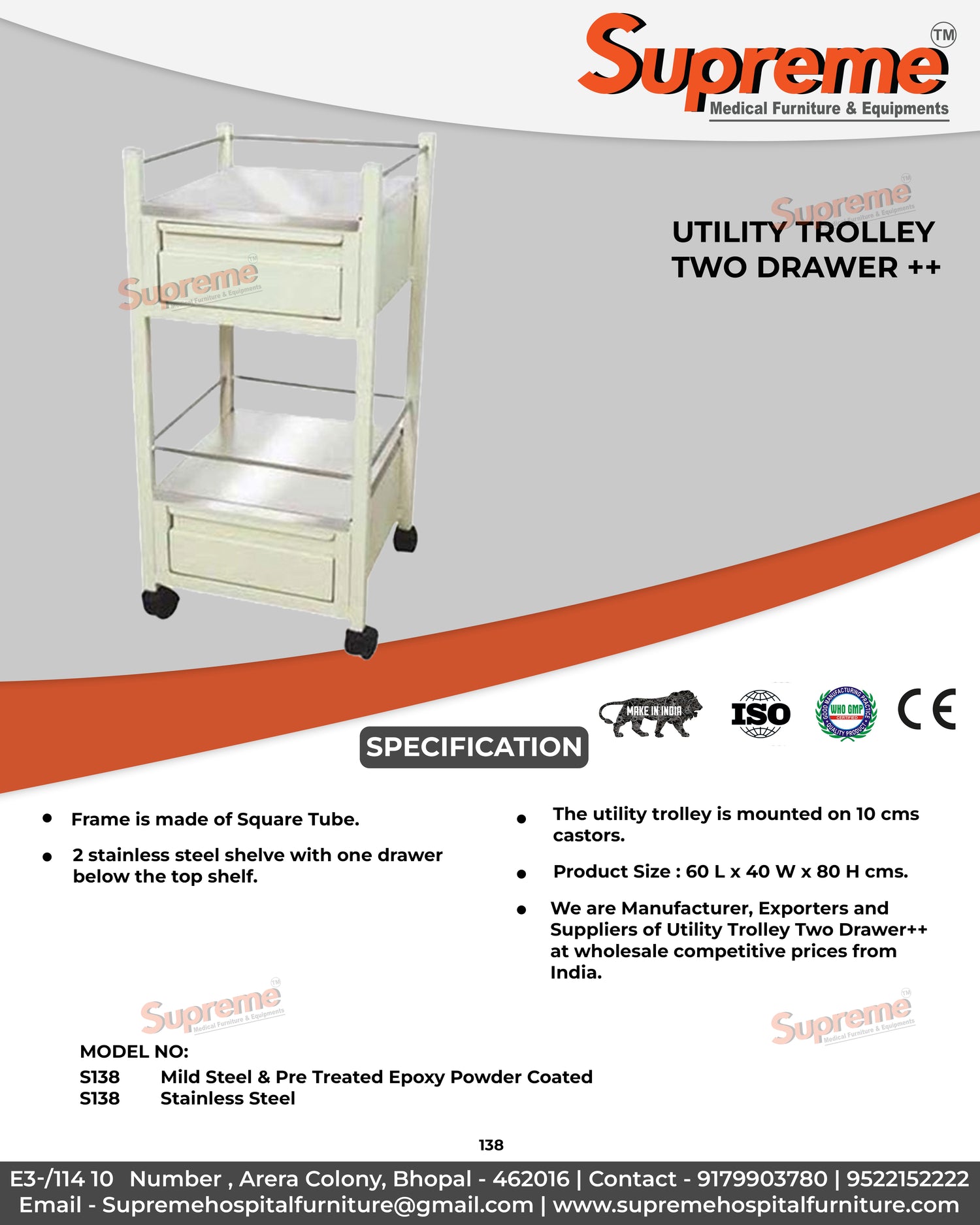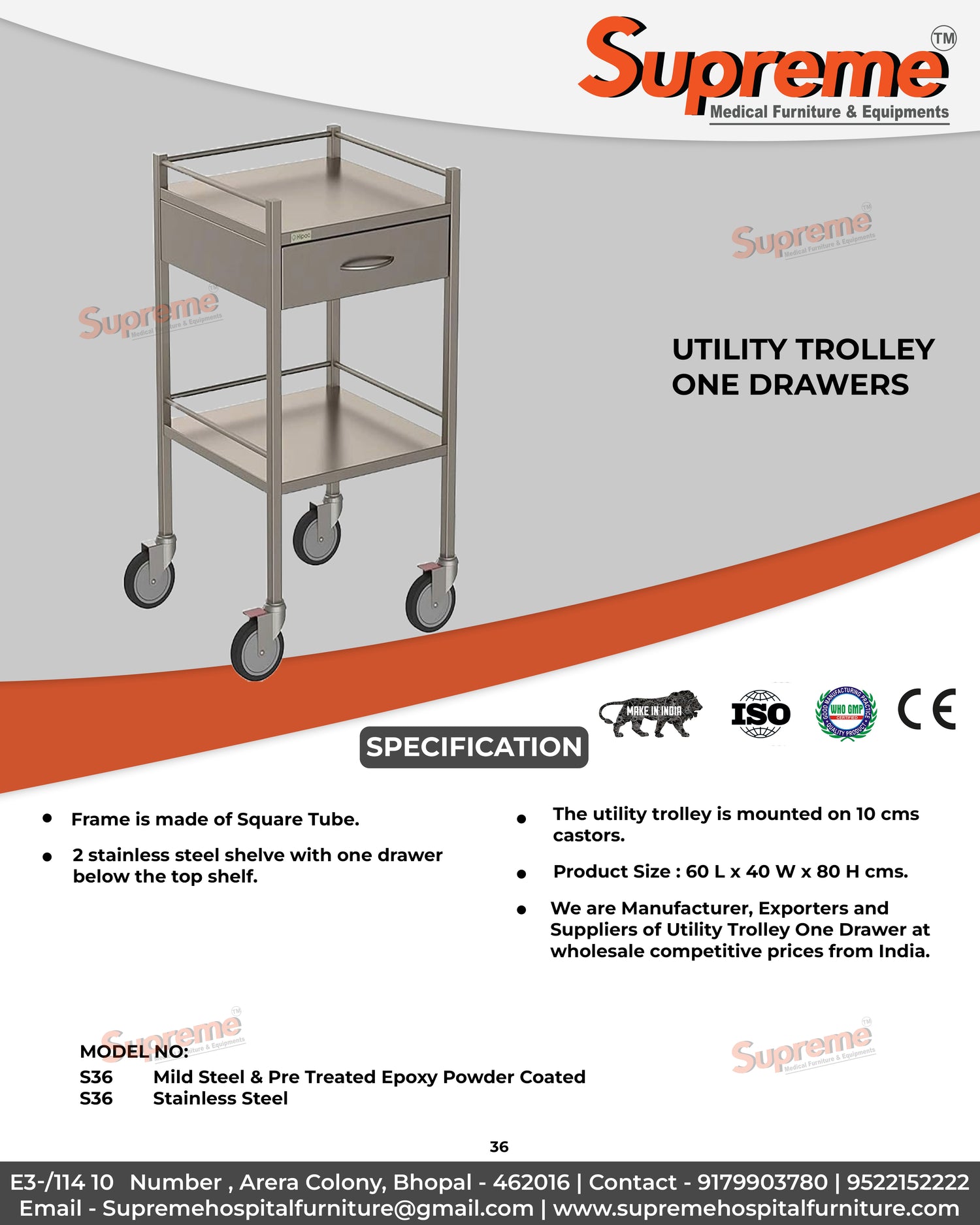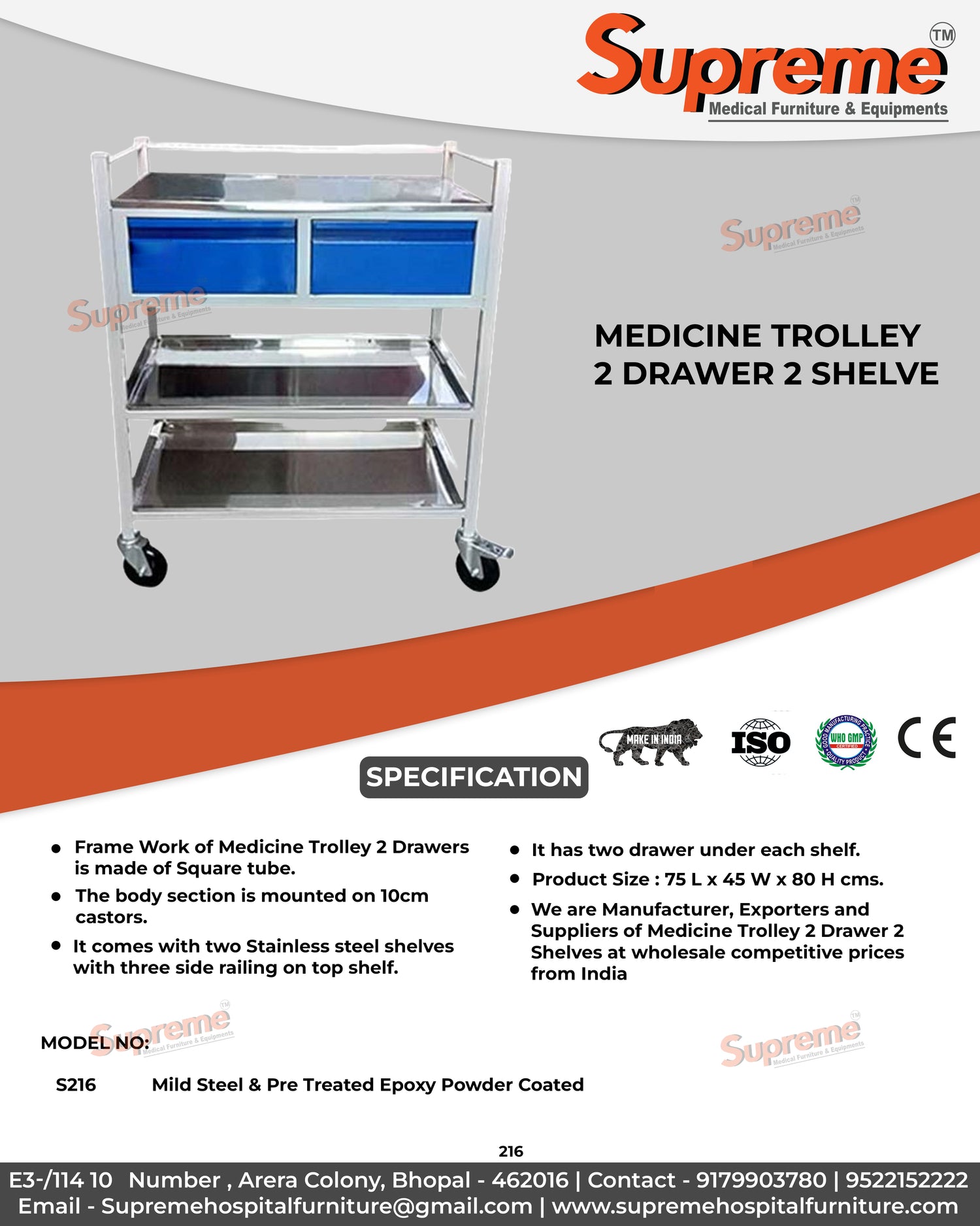 MEDICINE TROLLEY 2 DRAWER 2 SHELVES