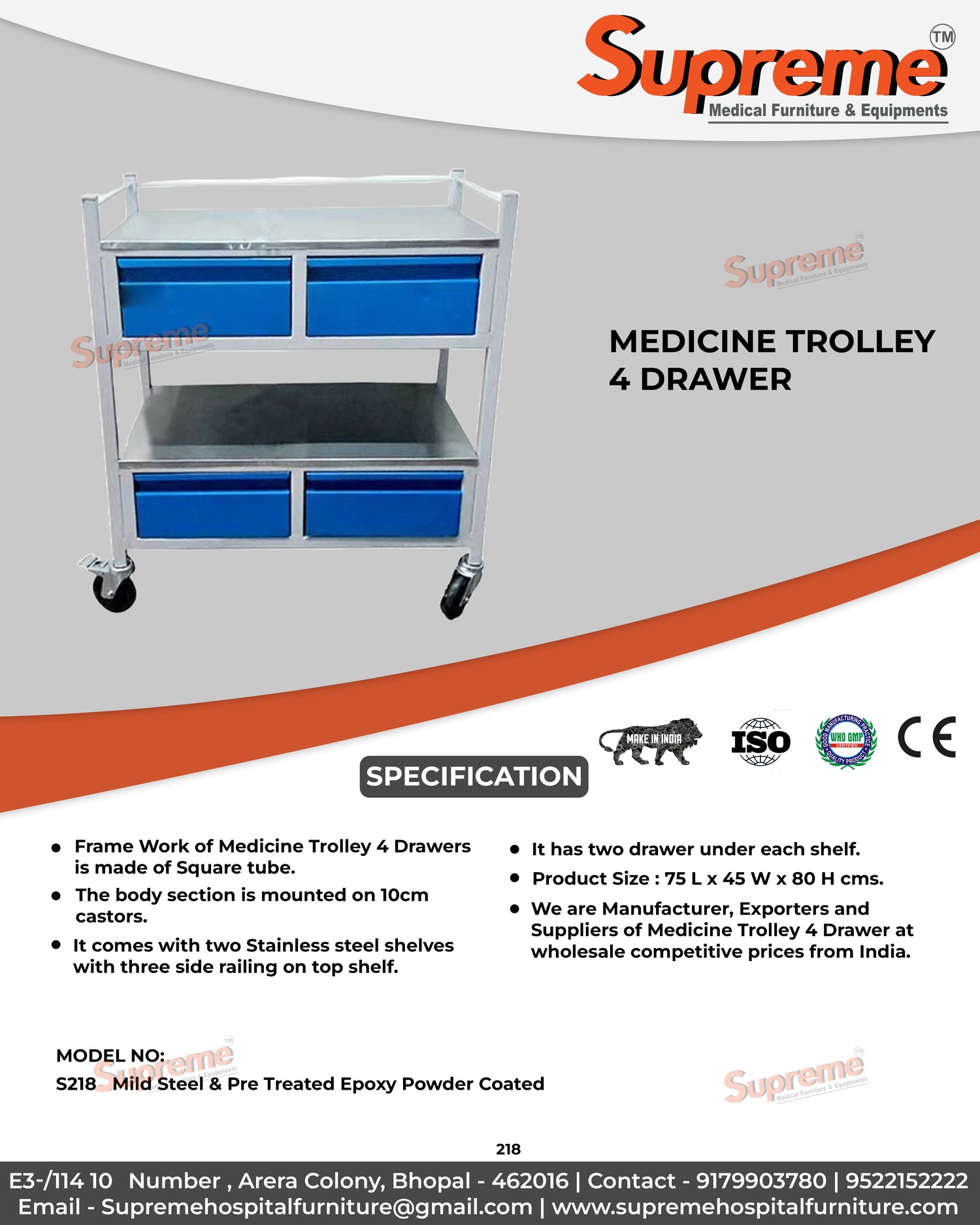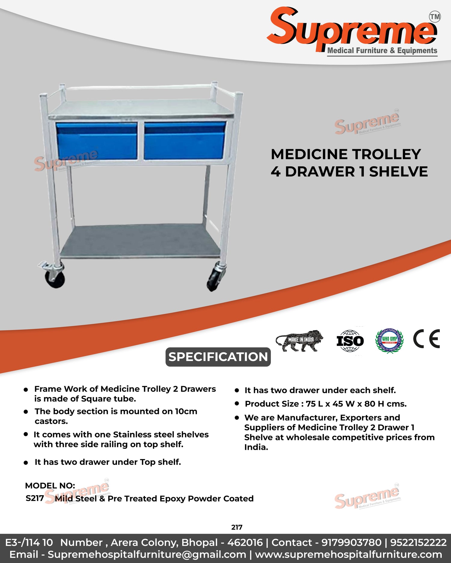 MEDICINE TROLLEY 4 DRAWER 1 SHELF