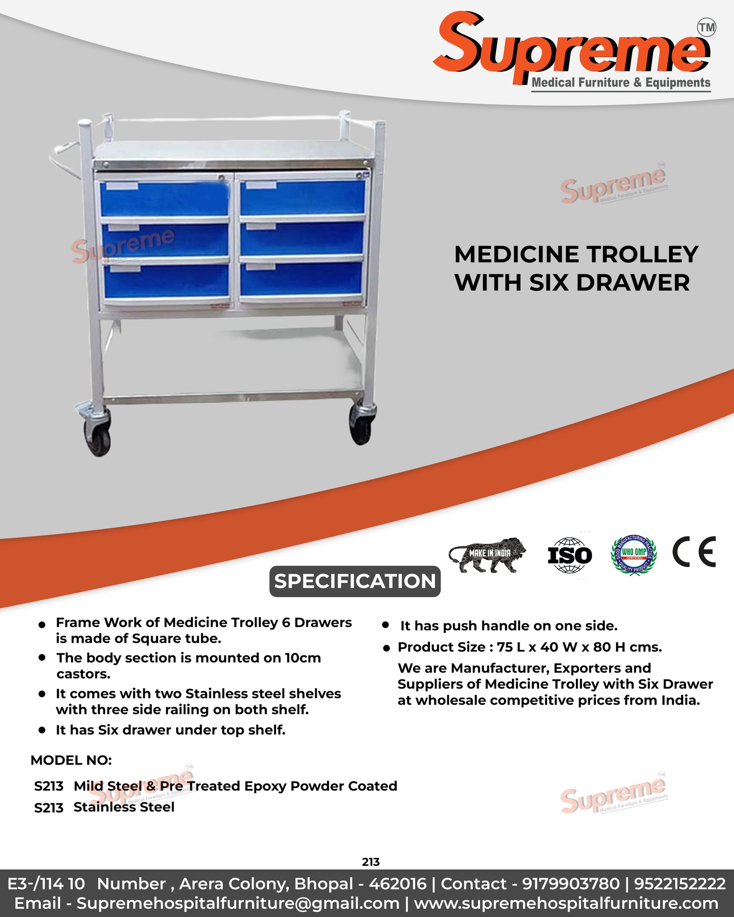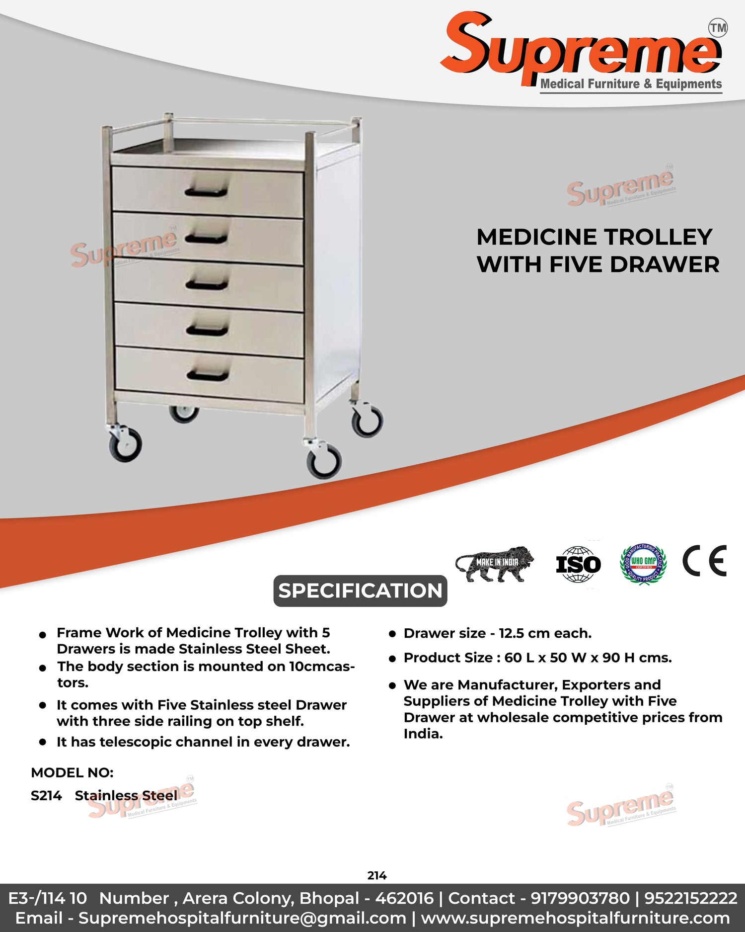 MEDICINE TROLLEY WITH FIVE DRAWER