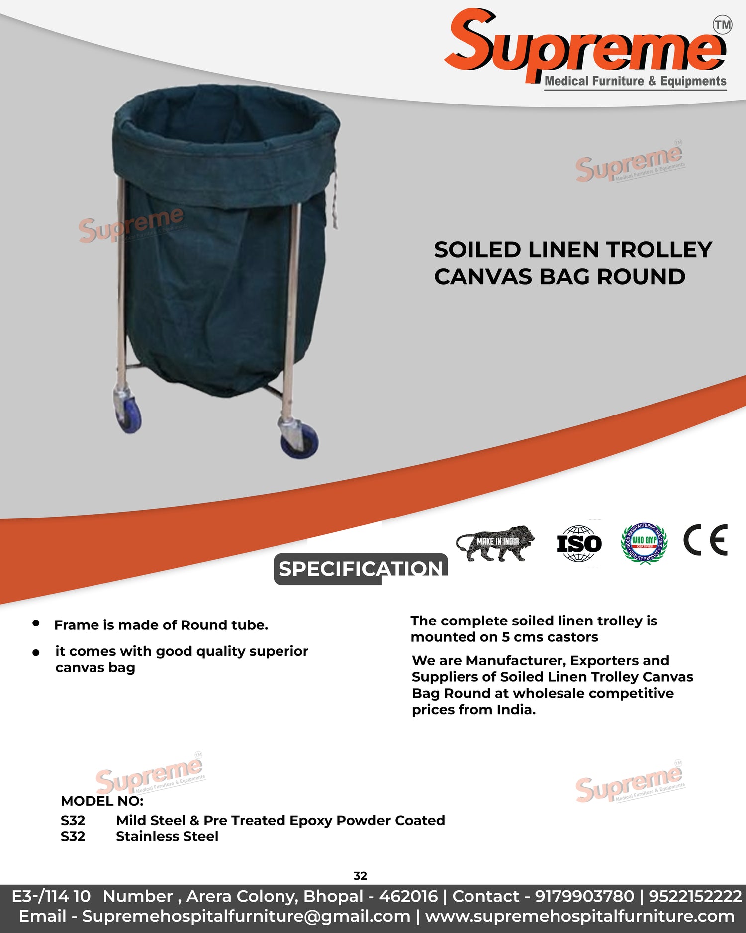 SOILED LINEN TROLLEY CANVAS BAG ROUND