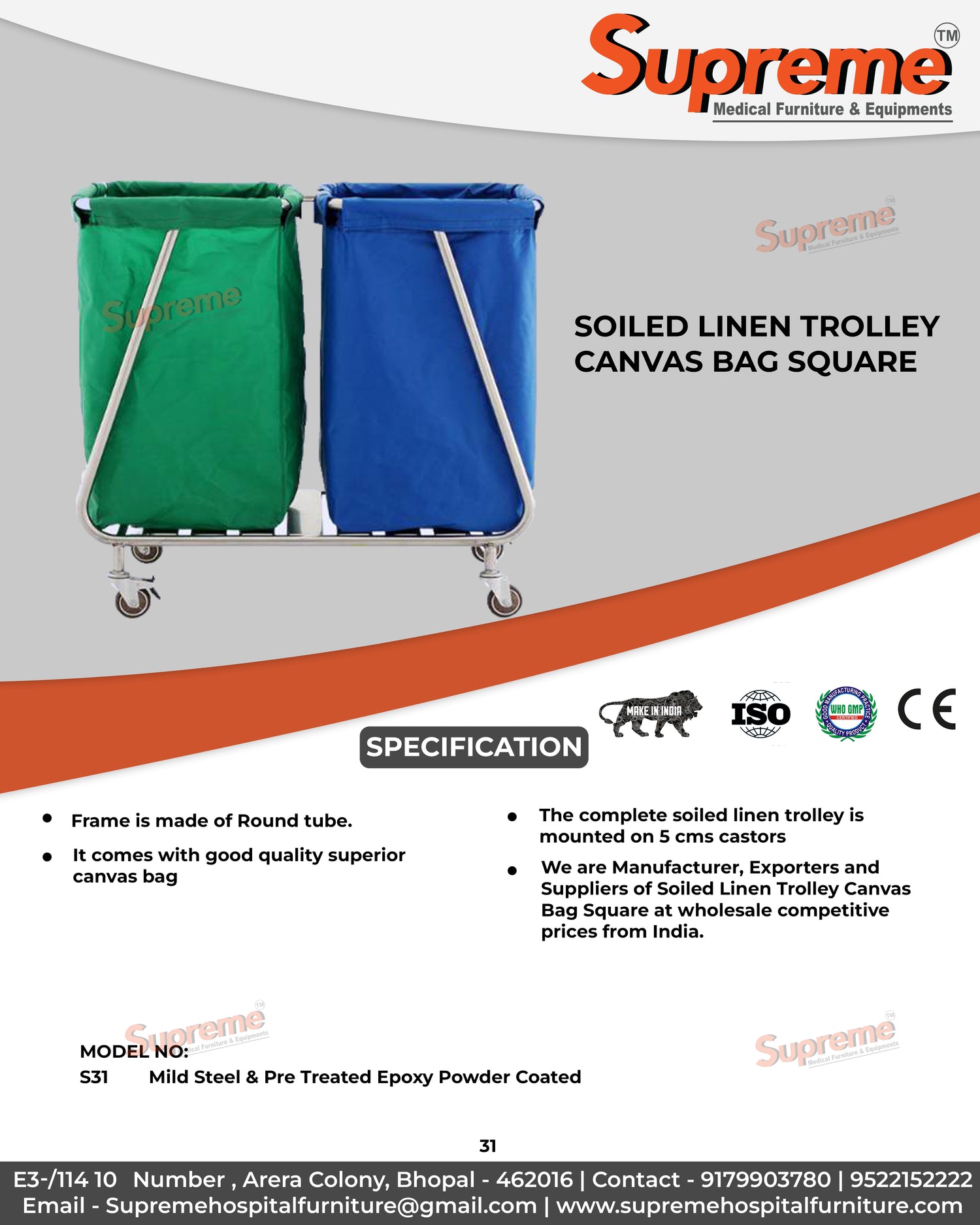 SOILED LINEN TROLLEY CANVAS BAG SQUARE